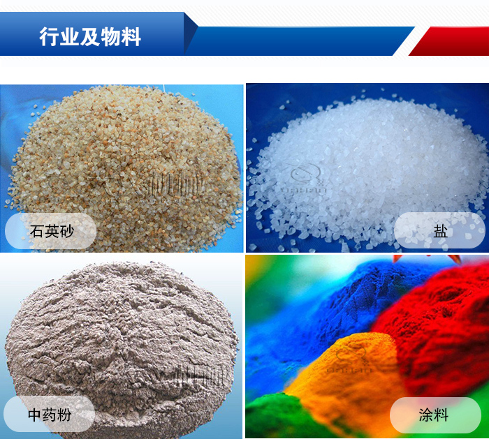 化工行业:树脂粉、颜料、洗衣粉、微粉、油漆、纯碱、柠檬粉、橡胶、塑料等。