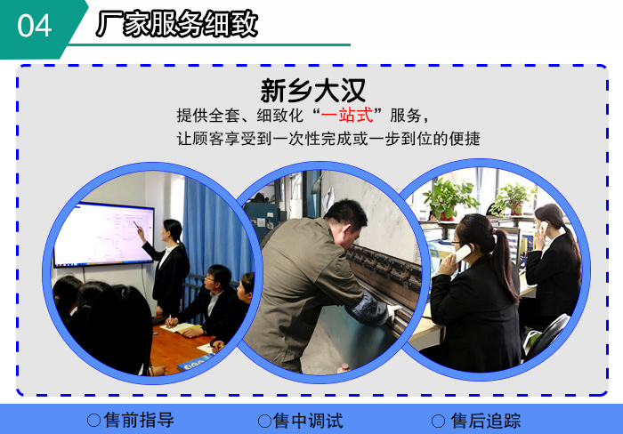 从前期选型、方案配置到中期设备操作指导,再到后期的售后服务,我们都有专人全程跟踪陪同,确保让客户买的放心,用的安心!