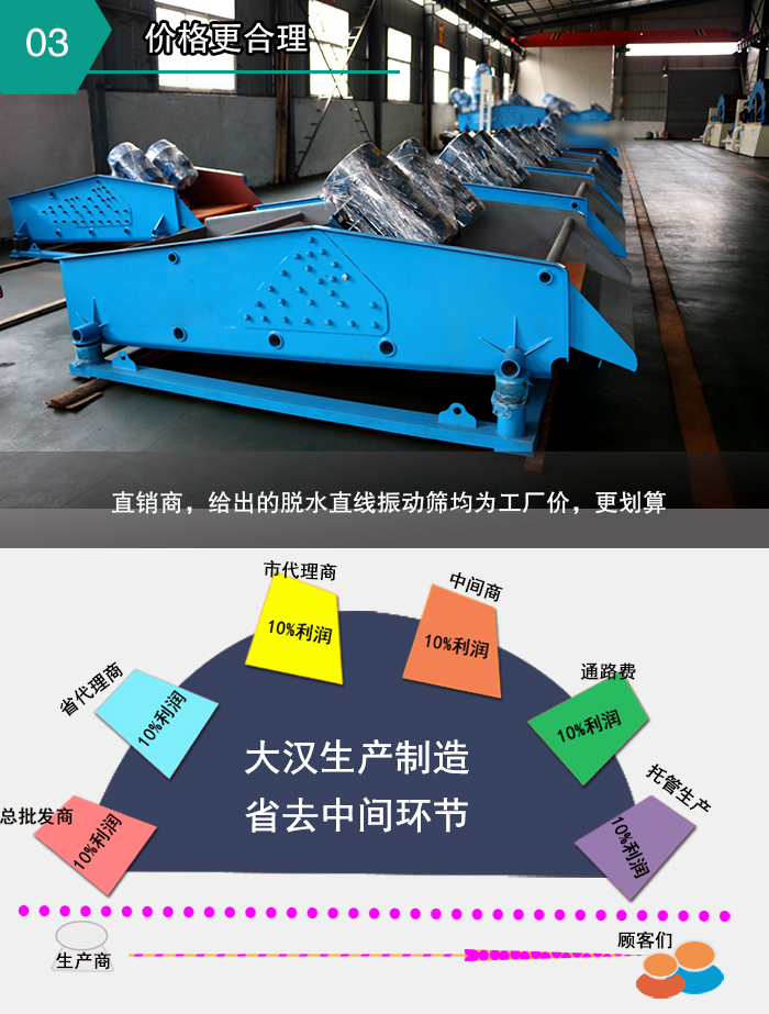 大汉公司是一家直销商,给出的脱水直线振动筛均为工厂价,无中间商,销售环节少,产生的额外费用低,相对来说,更划算。