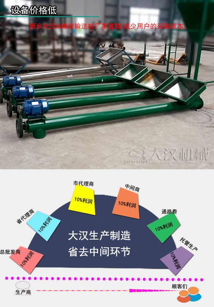 新乡大汉ls螺旋输送机厂家直销,售出的每一台设备都是直接面向我们的用户,不存在中间商,可以在一定程度上减少用户的采购成本。