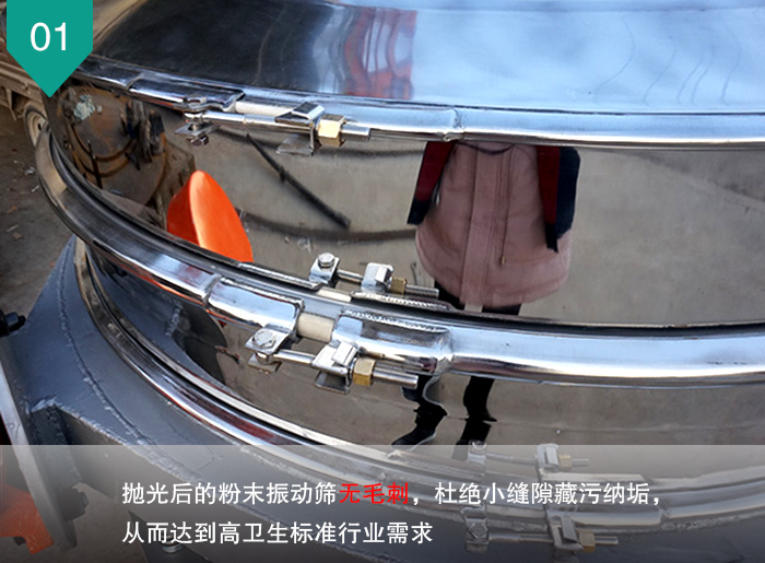 抛光后的粉末振动筛表面平整美观、光可鉴人,而且在使用中也不会被粗糙表面刺伤手。更能体现公司产品细节把控严苛的特点。