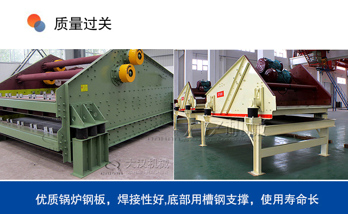 大汉是一家拥有20多年生产经验的振动筛生产厂家,我们的泥浆脱水筛板材及相关配件均由正规供应商提供,可提供检验合格证和相关资质认证,质量通过ISO国际质量体系认证和欧盟CE认证,脱水筛侧板采用优质锅炉钢板,焊接性好,焊工焊过之后会严格不能出现焊孔,底部用槽钢支撑,使用寿命长。