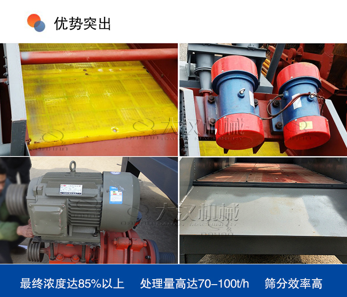①浓缩型水力旋流器+高效多频脱水筛,终浓度达85%以上,使成品回收率增加,处理量高达70-100t/h;