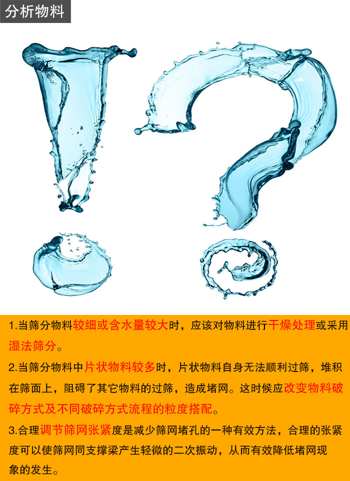 1.当筛分物料较细或含水量较大时,应该对物料进行干燥处理或采用湿法筛分。