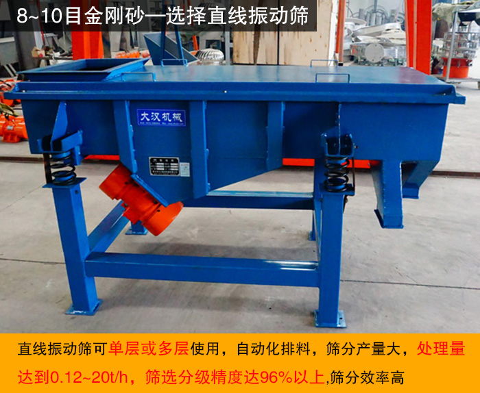 金刚砂目数在8-10目,对于这种颗粒比较大的金刚砂,推荐使用直线振动筛。
